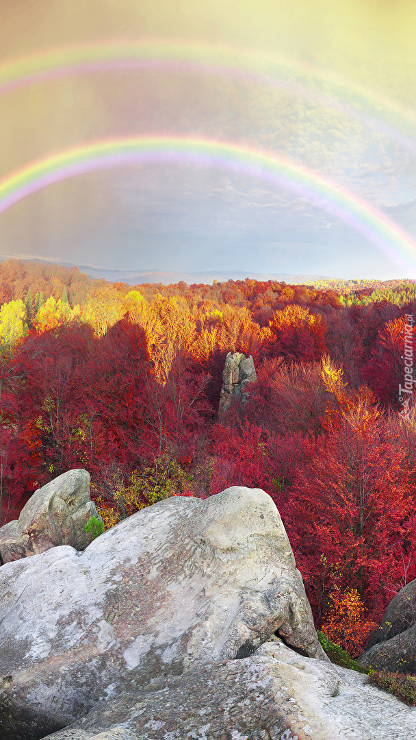 Edytor tapety: Tęcza nad jesiennym lasem