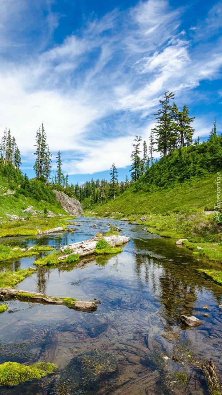 Edytor tapety: Drzewa na wzgórzu nad rzeką