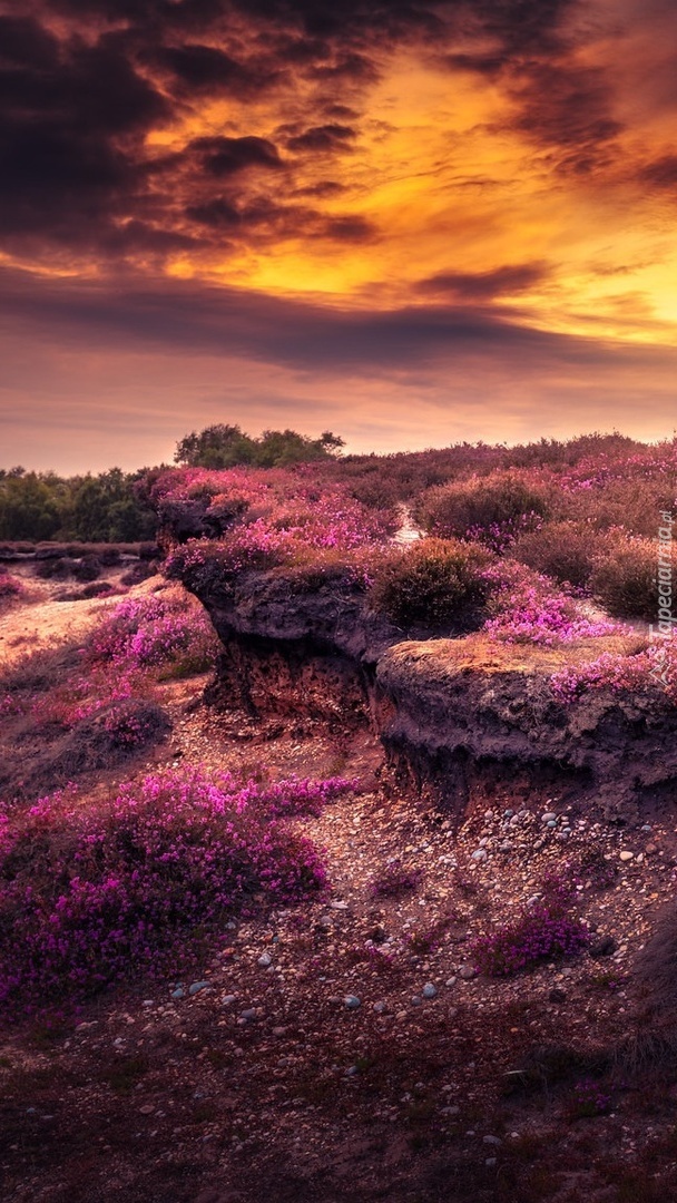 Edytor tapety: Zachód słońca nad wrzosowiskiem