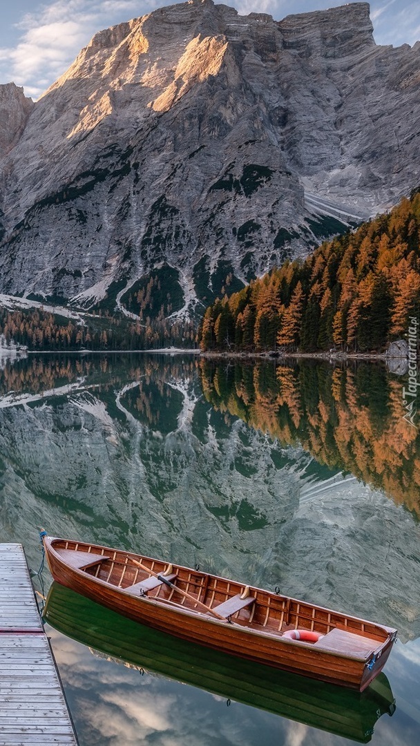 Edytor tapety: Łódka na jeziorze Pragser Wildsee