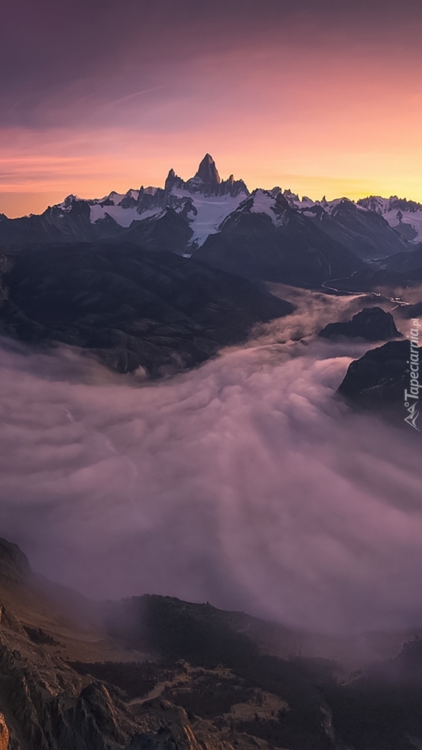 Edytor tapety: Widok na zamgloną górską dolinę