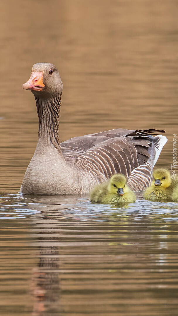 Edytor tapety: Gęś gęgawa z młodymi