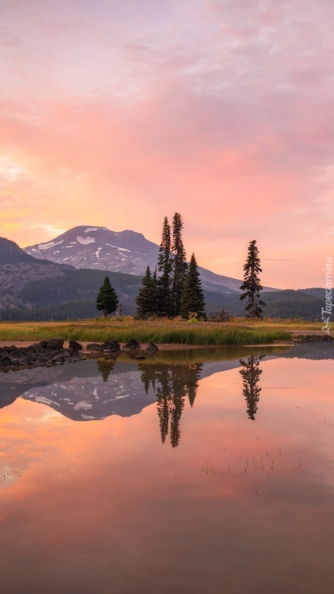 Edytor tapety: Odbicie nieba i gór w jeziorze