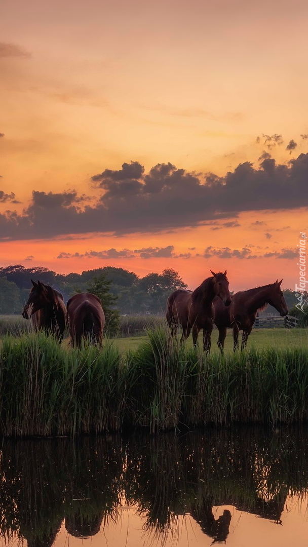 Edytor tapety: Konie na łące nad rzeką