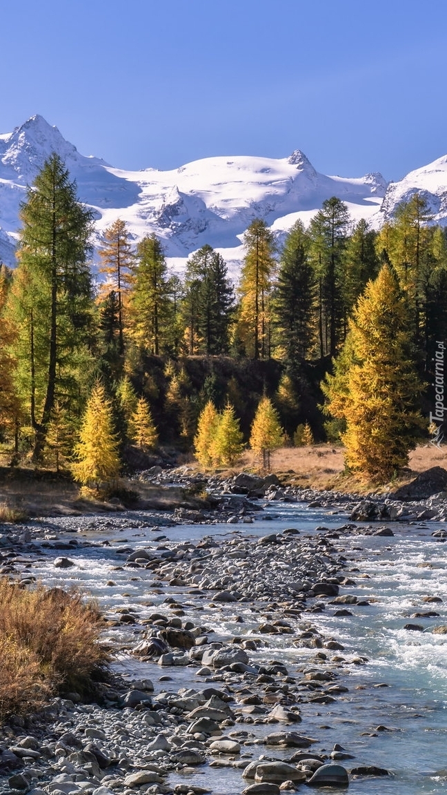 Edytor tapety: Drzewa na tle Alp