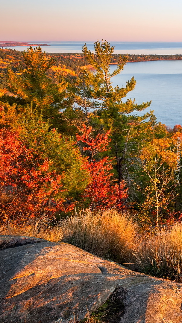 Edytor tapety: Kolorowe drzewa nad jeziorem Superior Lake