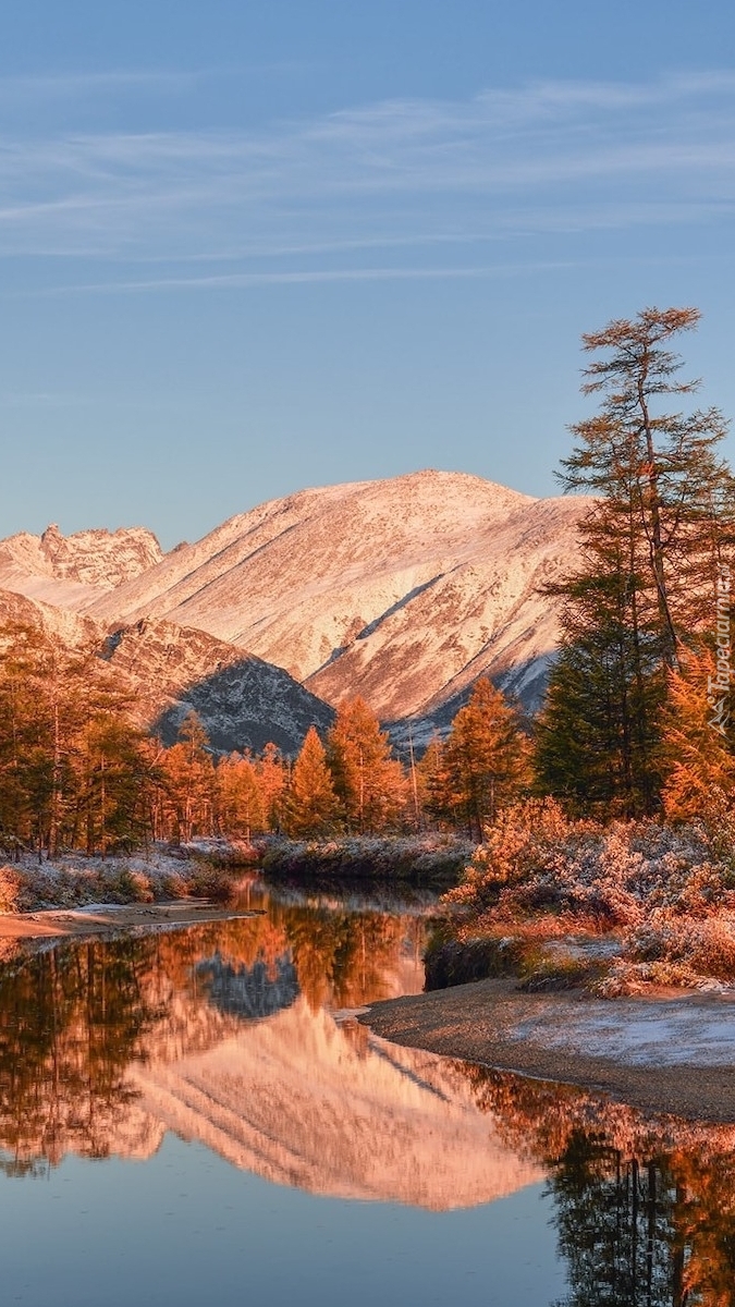 Edytor tapety: Jesienne drzewa nad górską rzeką