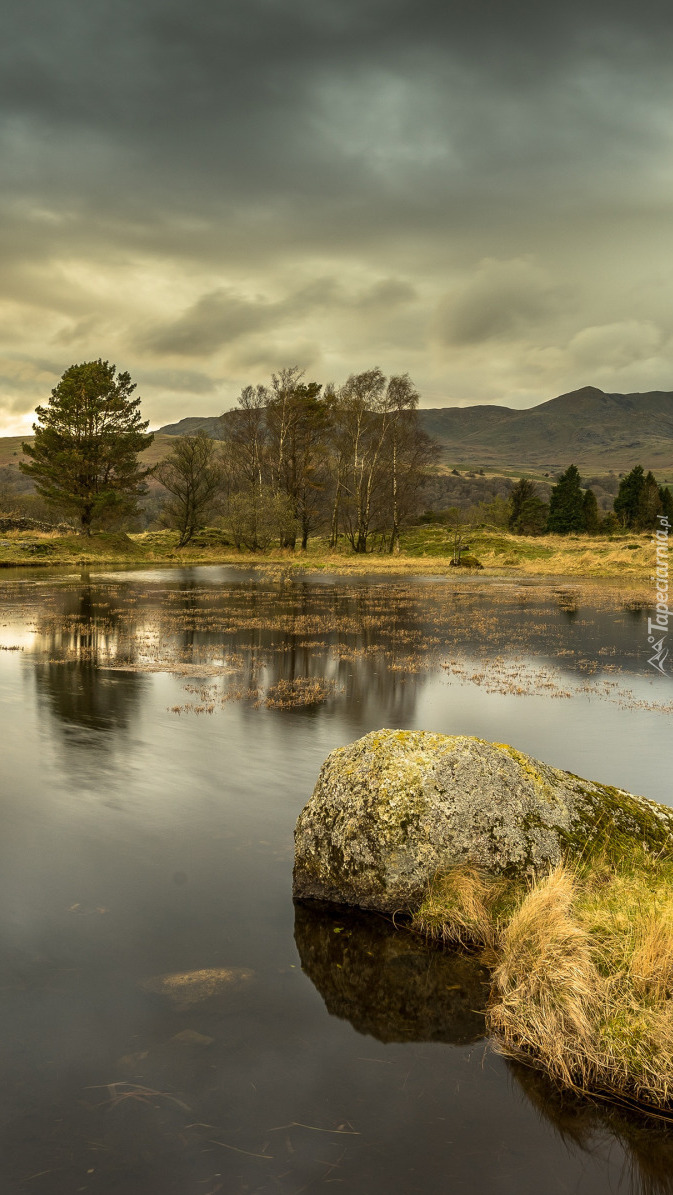 Edytor tapety: Chmury nad górami i jeziorem
