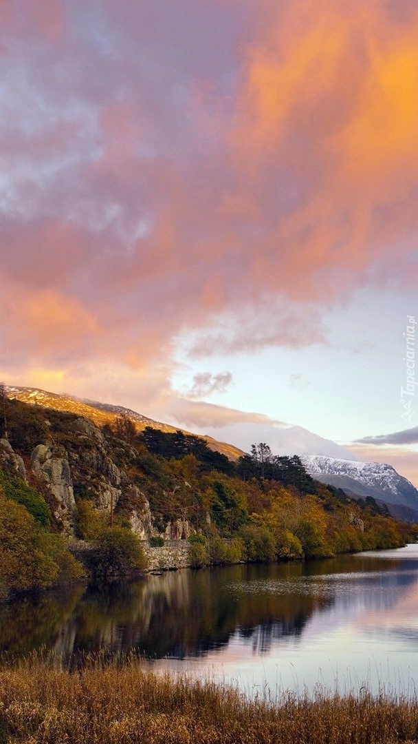 Edytor tapety: Malownicze chmury nad jeziorem i lasami