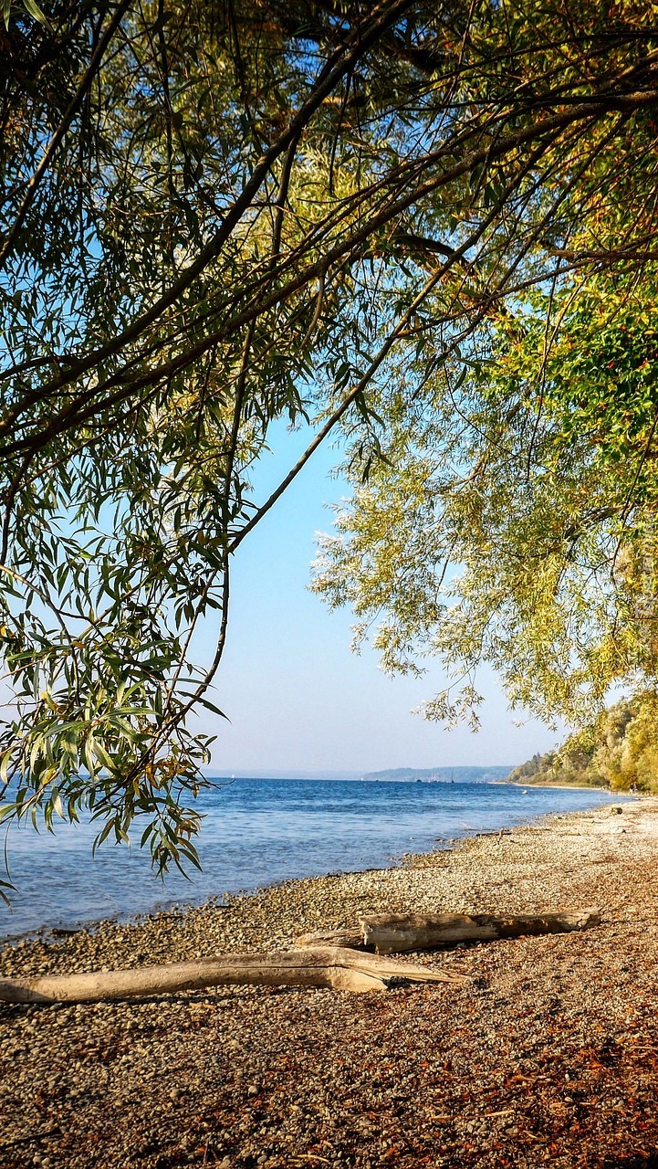 Edytor tapety: Widok zza gałęzi na jezioro