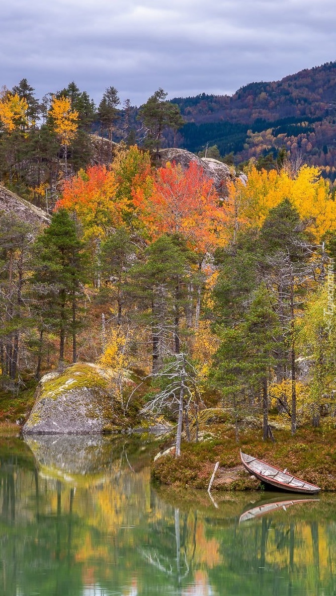Edytor tapety: Łódka na brzegu jeziora