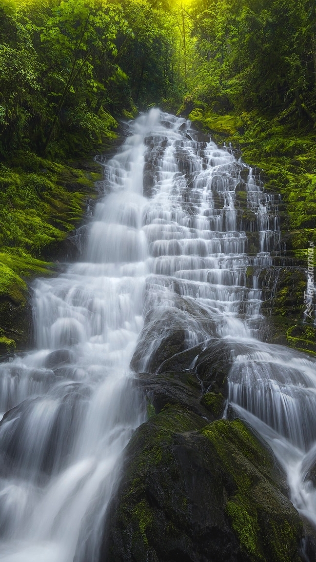 Edytor tapety: Drzewa przy wodospadzie Staircase Falls
