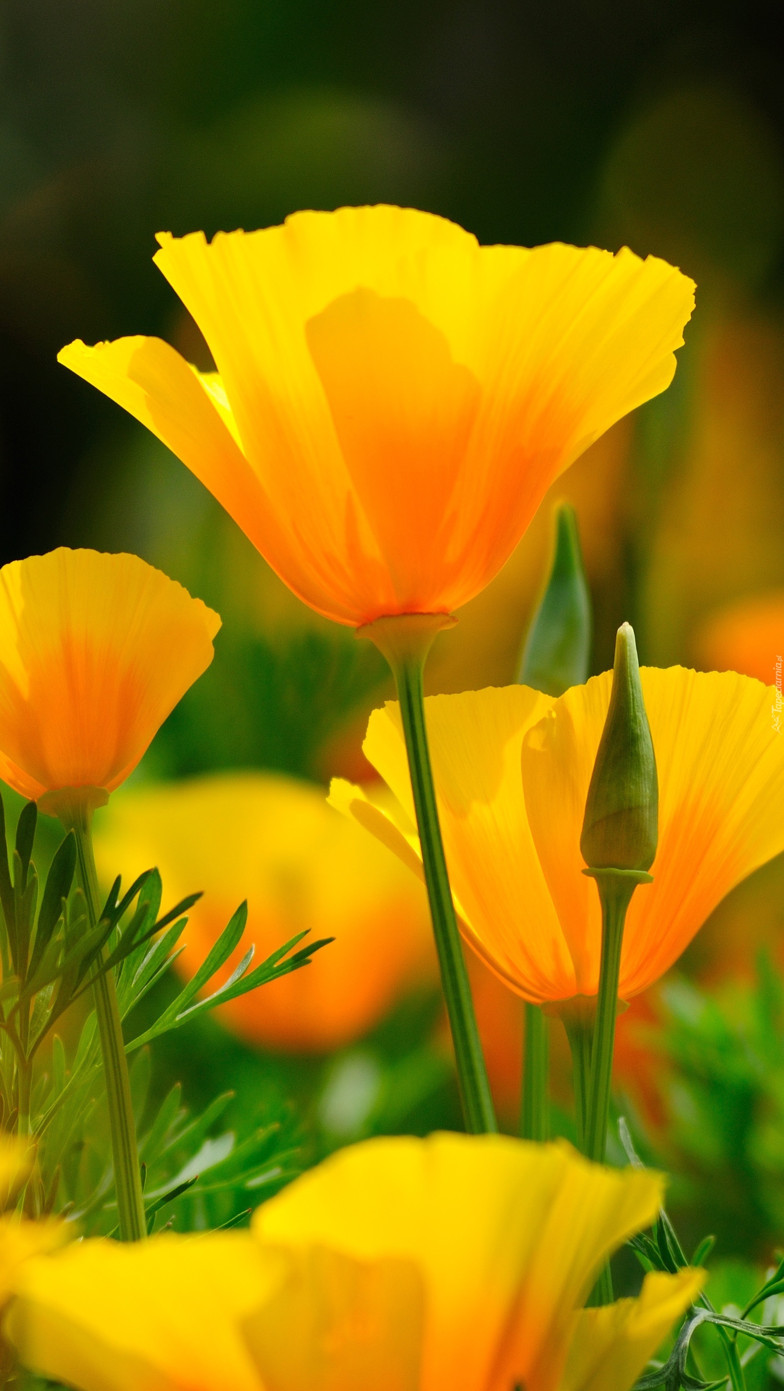 Edytor tapety: Żółte rozwinięte kwiaty i pąki