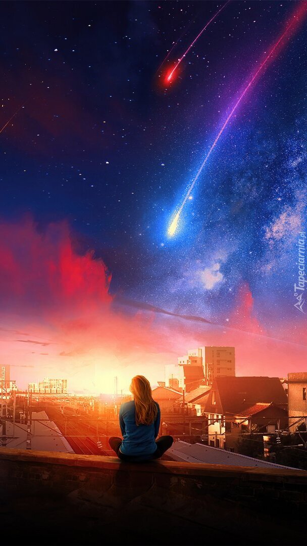 Edytor tapety: Kobieta oglądająca spadające gwiazdy
