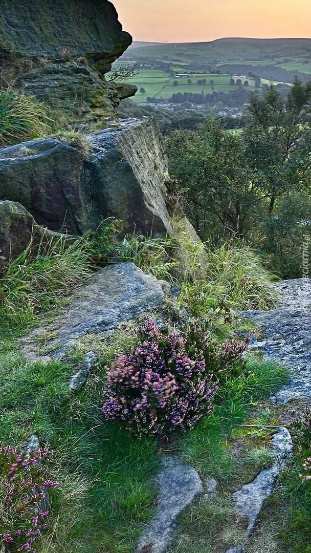 Edytor tapety: Wrzosy na skałach