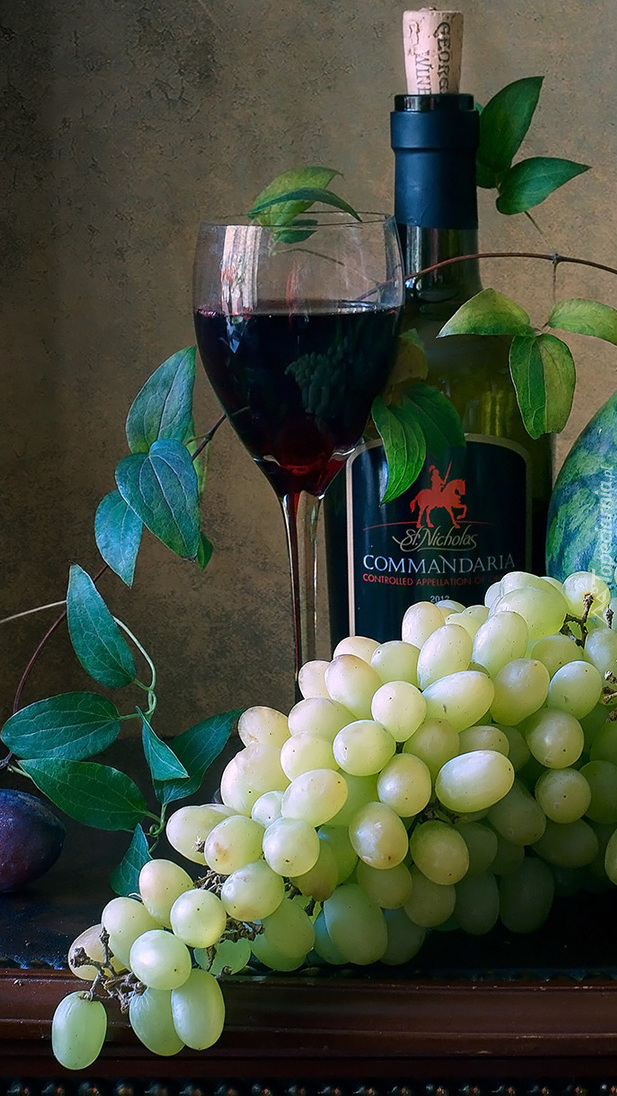 Edytor tapety: Winogrona i kieliszek wina