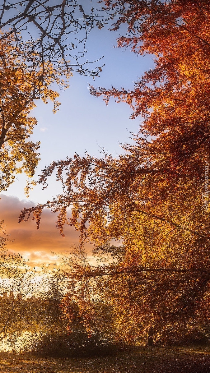 Edytor tapety: Rozświetlone słońcem jesienne drzewa