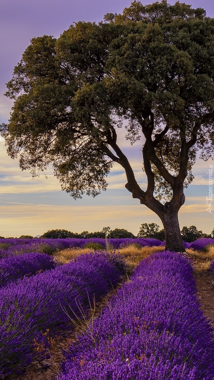 Edytor tapety: Drzewo na polu z lawendą