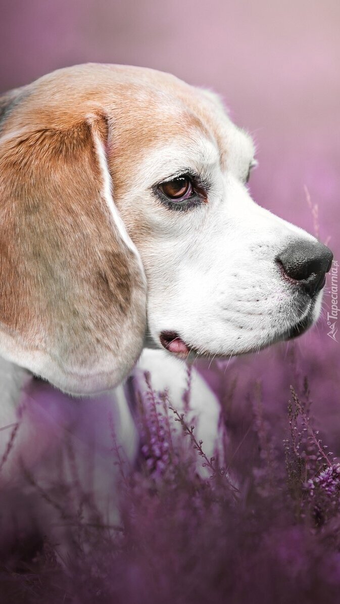 Edytor tapety: Beagle we wrzosach