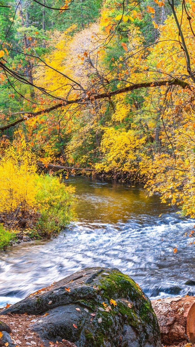 Edytor tapety: Pożółkłe drzewa nad rzeką