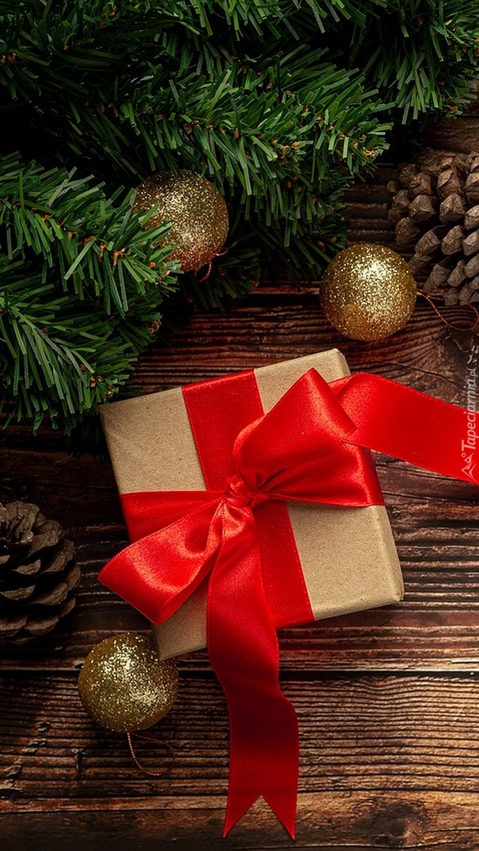 Edytor tapety: Prezent pod gałązką na deskach
