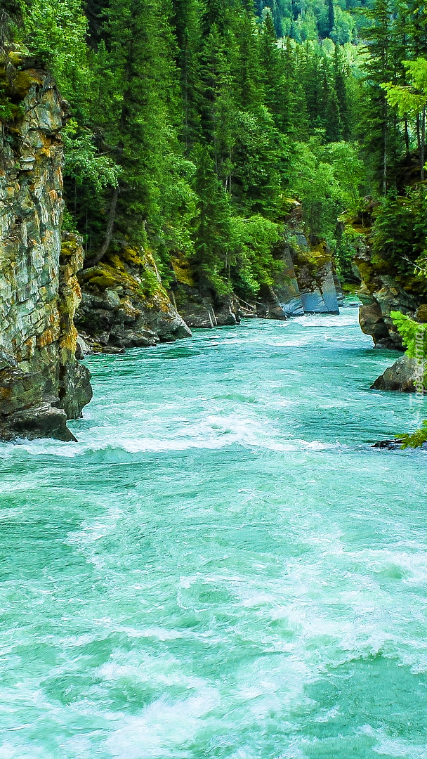 Edytor tapety: Drzewa nad brzegiem rwącej rzeki