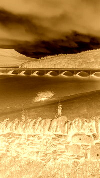 Edytor tapety: Kamienny mur Bamford Edge nad jeziorem Ladybower Reservoir