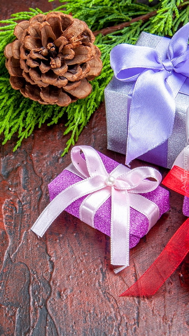 Edytor tapety: Szyszka obok prezentów