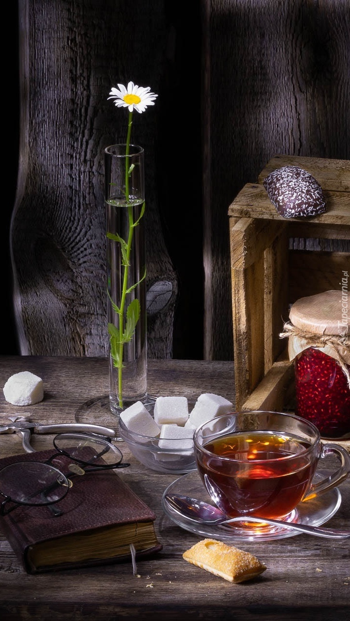 Edytor tapety: Filiżanka z herbatą obok książki