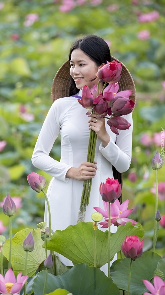 Edytor tapety: Azjatka z kwiatami lotosu