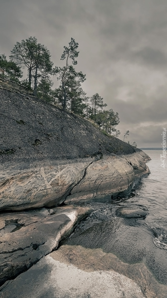 Edytor tapety: Skała z drzewami na Jeziorze Ładoga