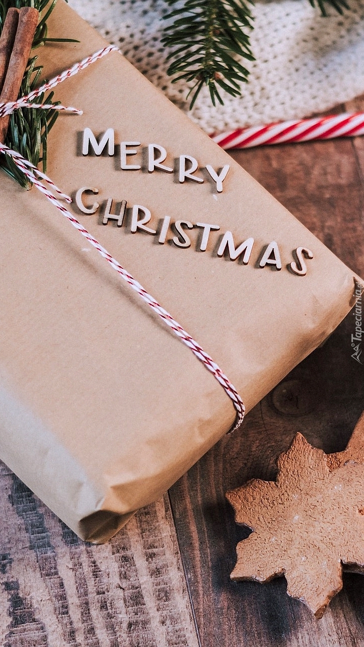 Edytor tapety: Prezent z napisem Merry Christmas