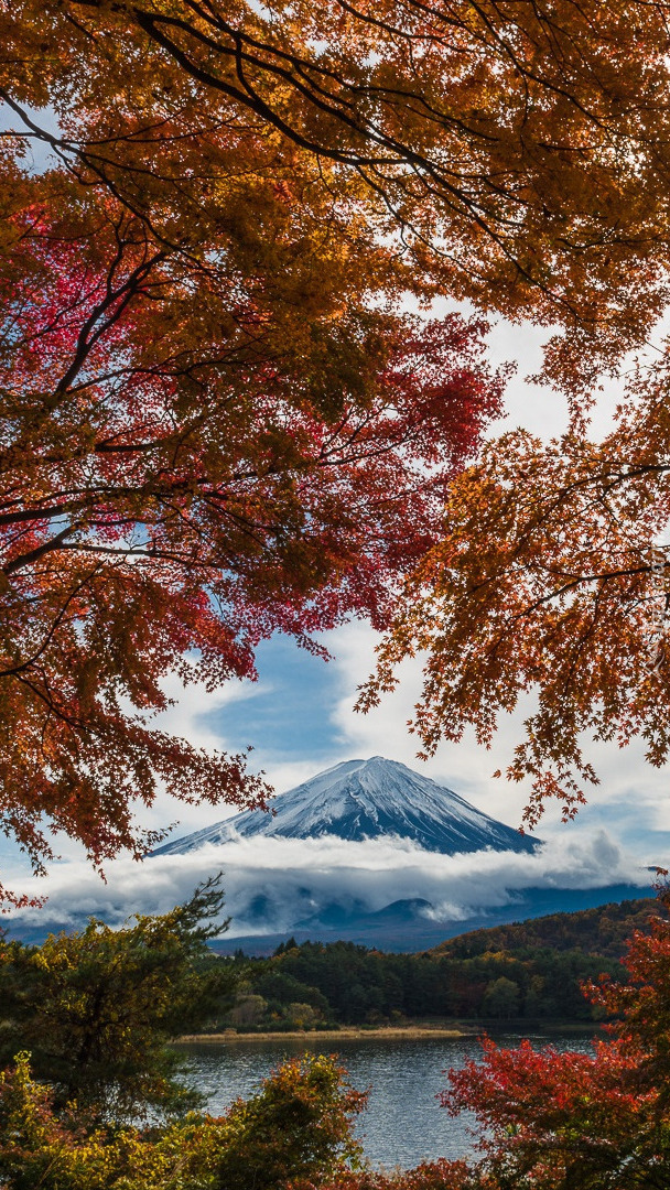 Edytor tapety: Jesienne drzewa na tle góry Fudżi