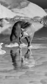 Edytor tapety: Sieberian husky na kamieniach w rzece