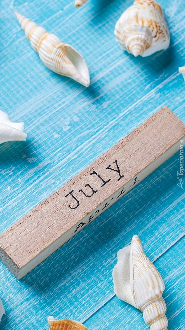 Edytor tapety: Klocek z napisem July wśród muszelek