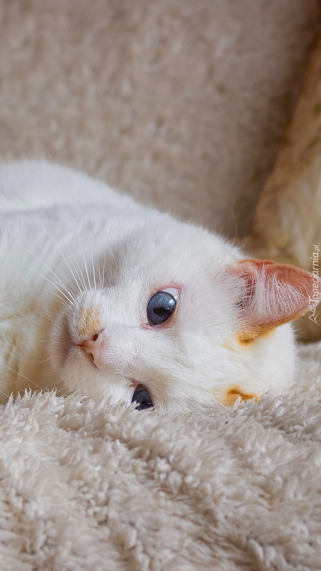 Edytor tapety: Niebieskooki kot leżący na kocu