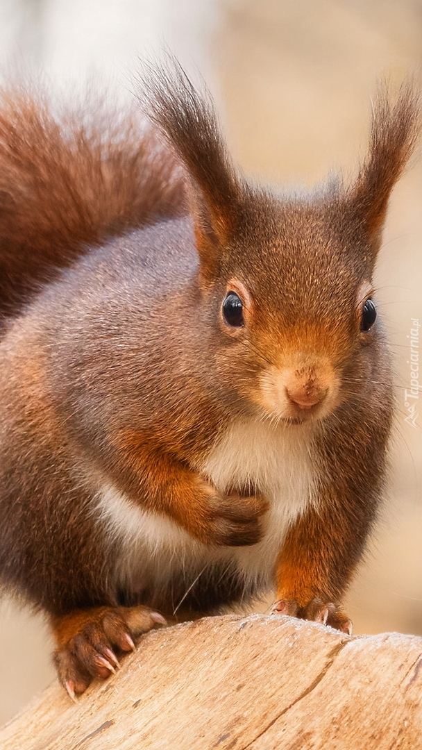 Edytor tapety: Wiewiórka na pniu w zbliżeniu