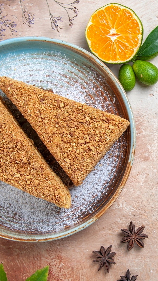 Edytor tapety: Kawałki ciasta na talerzu obok limonki