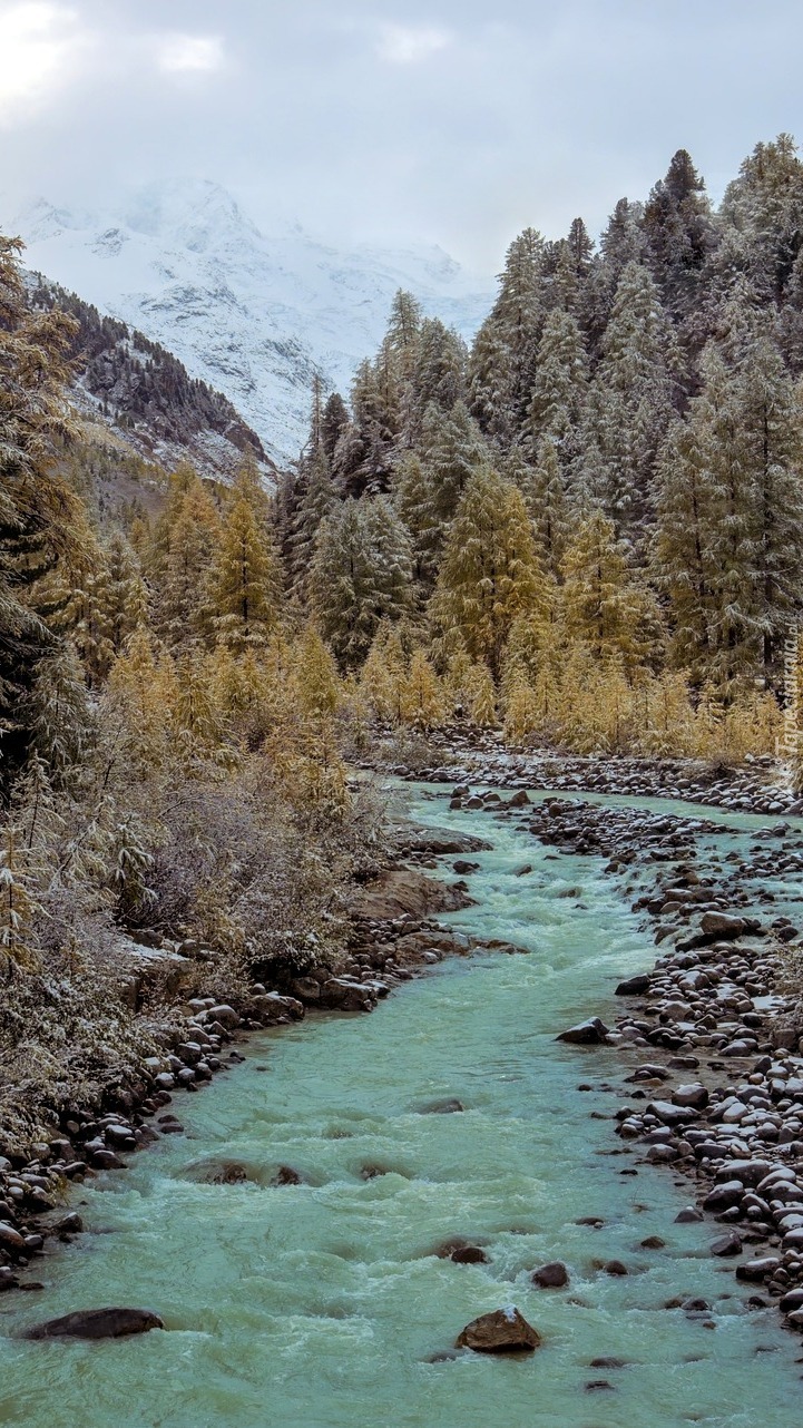 Edytor tapety: Oszronione drzewa nad górskim strumieniem