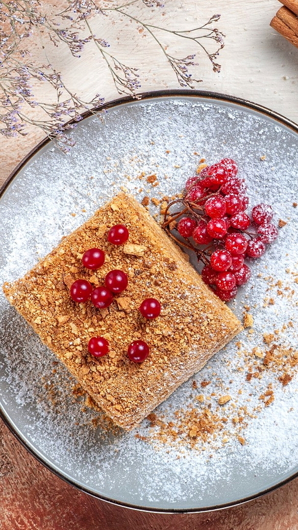 Edytor tapety: Kawałek ciasta z porzeczkami na talerzyku