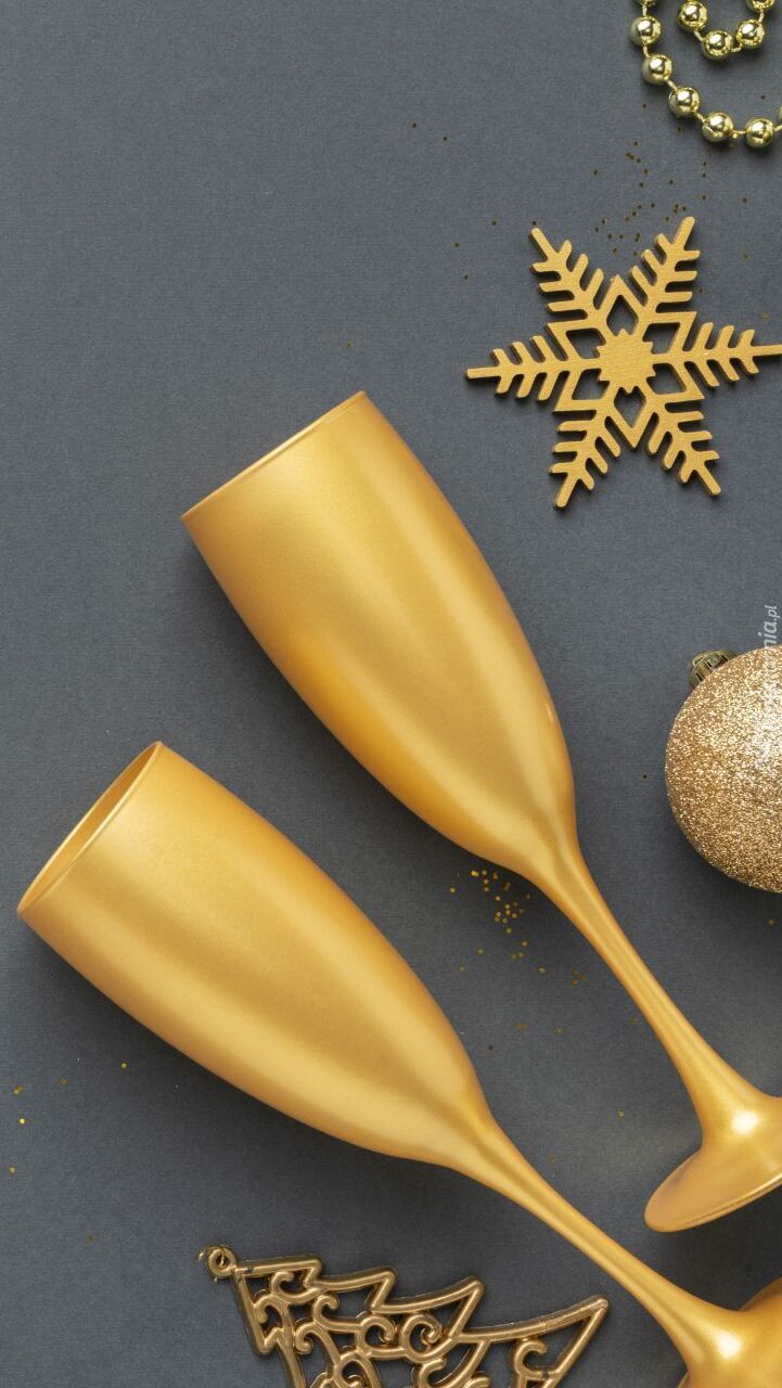 Edytor tapety: Złote kieliszki i ozdoby choinkowe