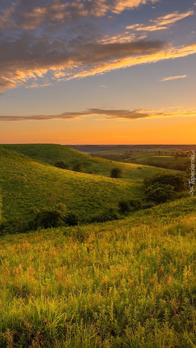 Edytor tapety: Łąki na wzgórzach o wschodzie słońca