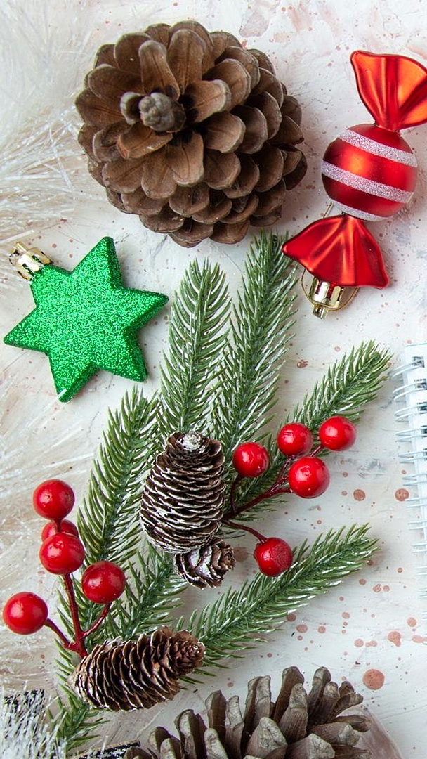 Edytor tapety: Kompozycja z szyszkami i bombką