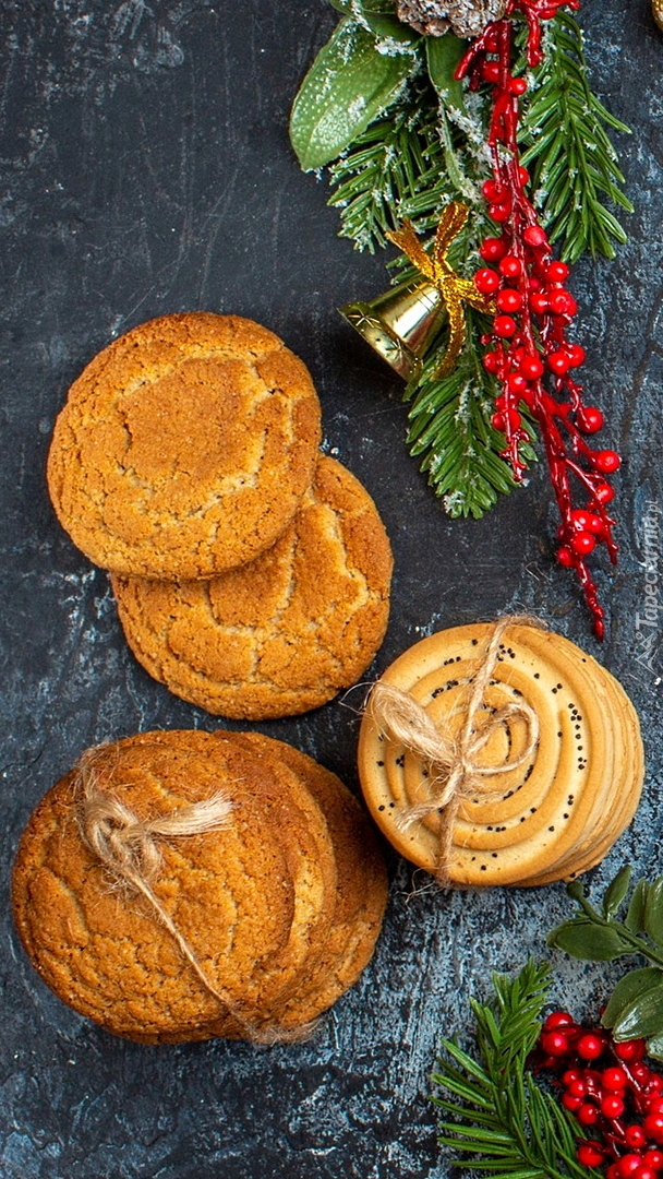 Edytor tapety: Ciasteczka obok ozdób na gałązce