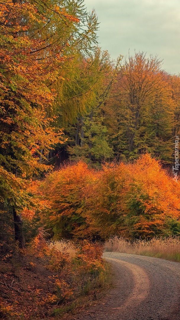 Edytor tapety: Jesienne drzewa przy zakręcie drogi
