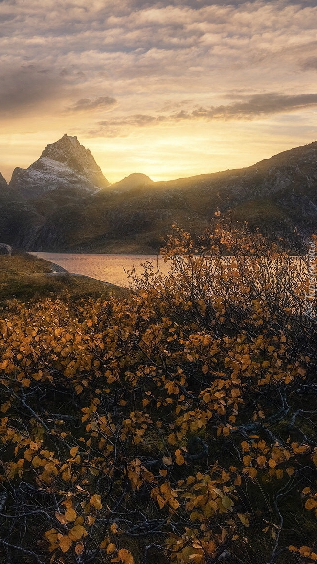 Edytor tapety: Pożółkłe krzewy na tle Gór Skandynawskich