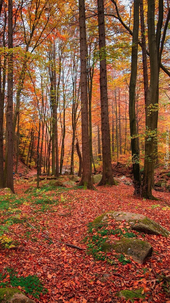 Edytor tapety: Opadłe liście i kamienie pod drzewami