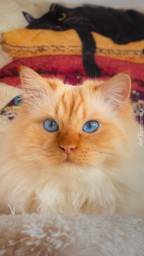 Edytor tapety: Rudo-biały niebieskooki kot