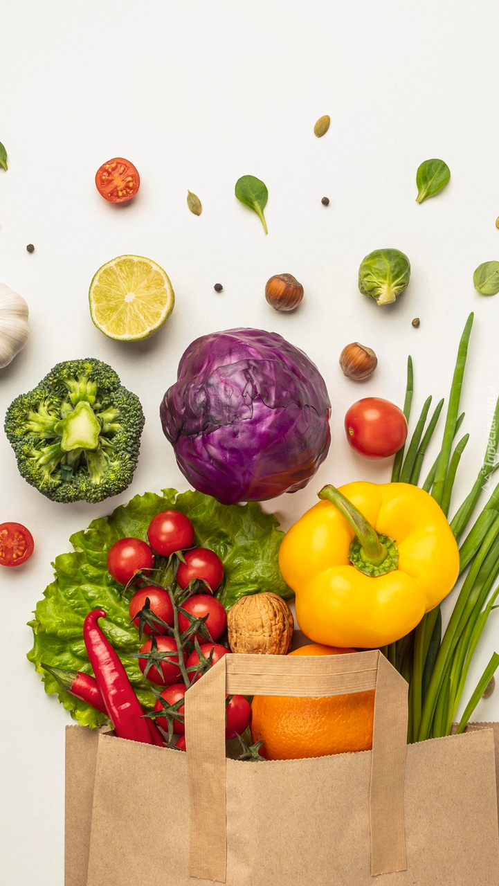 Edytor tapety: Warzywa wysypane z papierowej torby