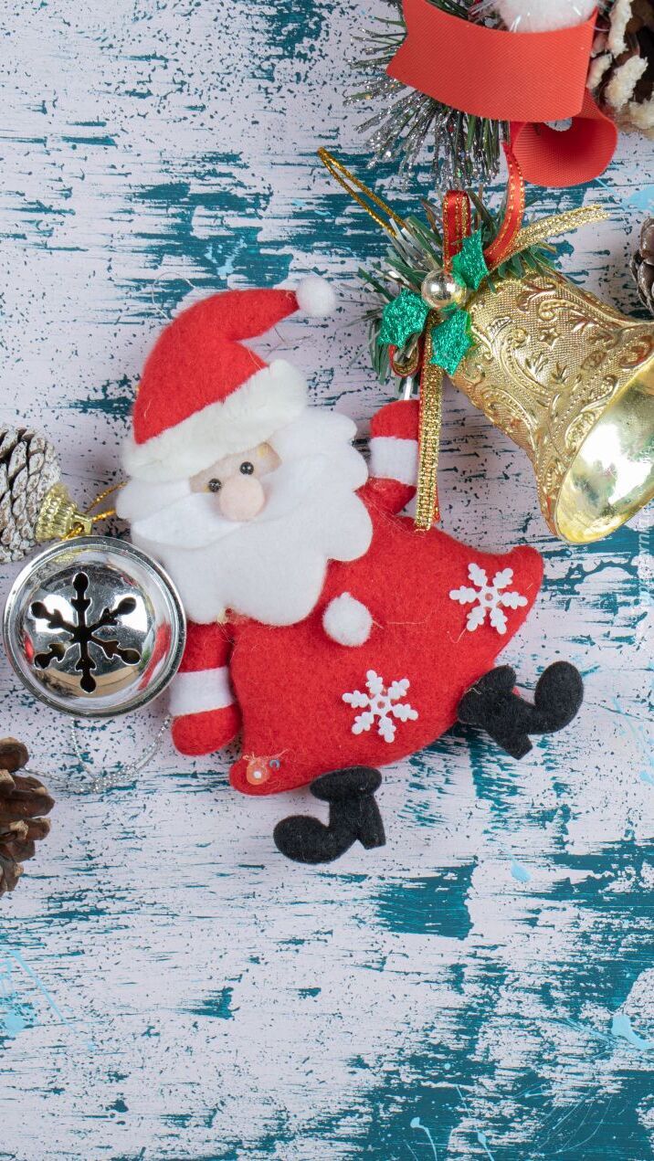Edytor tapety: Mikołaj obok bombki i dzwoneczka